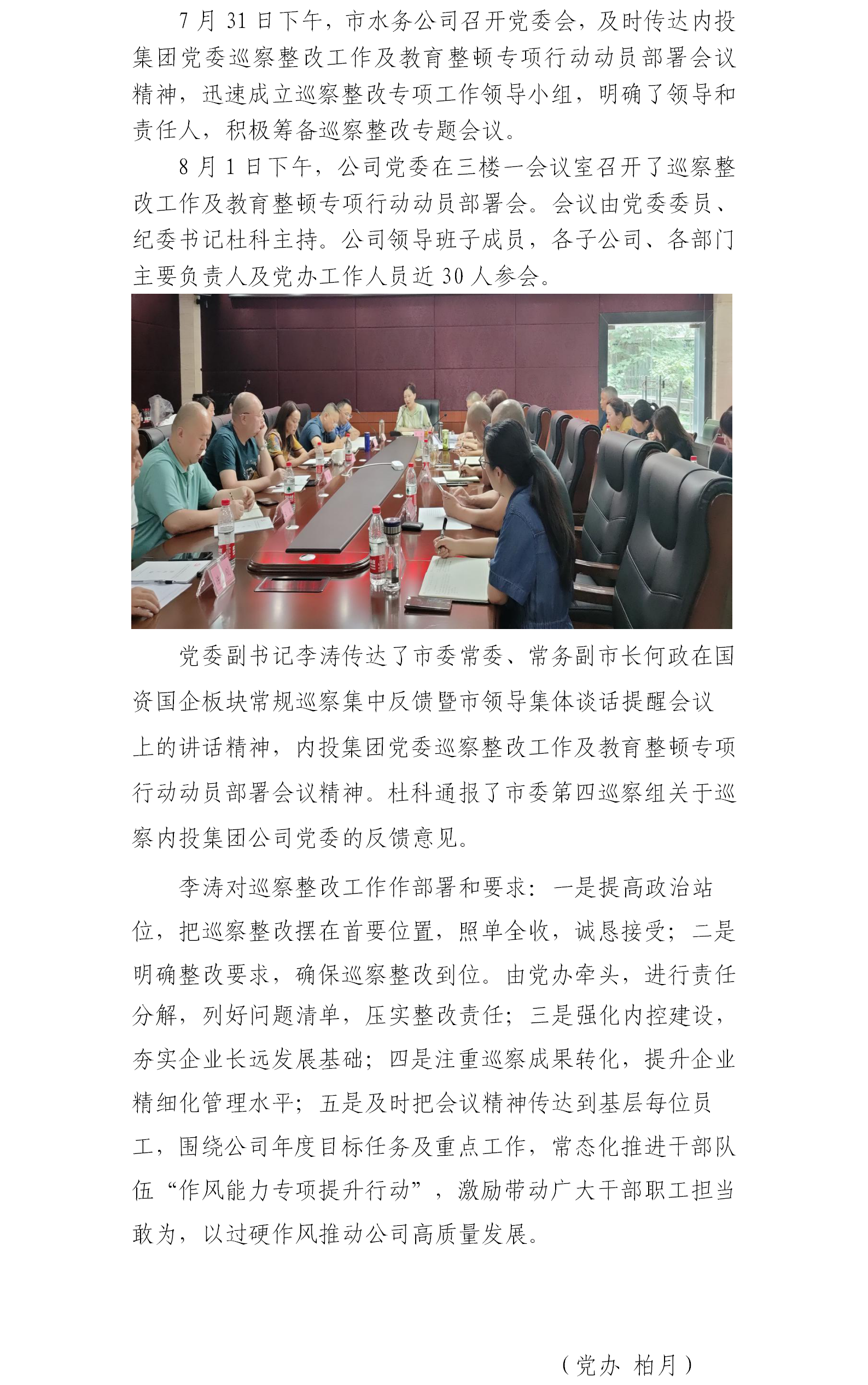 內江市水務有限責任公司黨委召開巡察整改工作暨教育整頓專項行動動員部署會