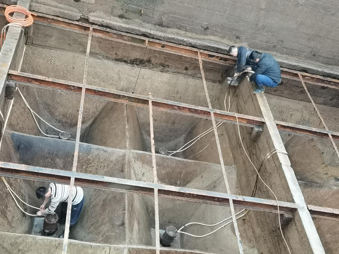 為提高生產運行可靠性,保障安全供水,二水廠結合浮沉池斜板改造工作,同步推進池底閥檢修,既節約時間又降低生產能耗。在池底閥檢修工作中,我廠維修人員不懼風雨、不畏艱辛,根據工作需要主動加班加點,用實際行動詮釋水務人保安全供水的決心。