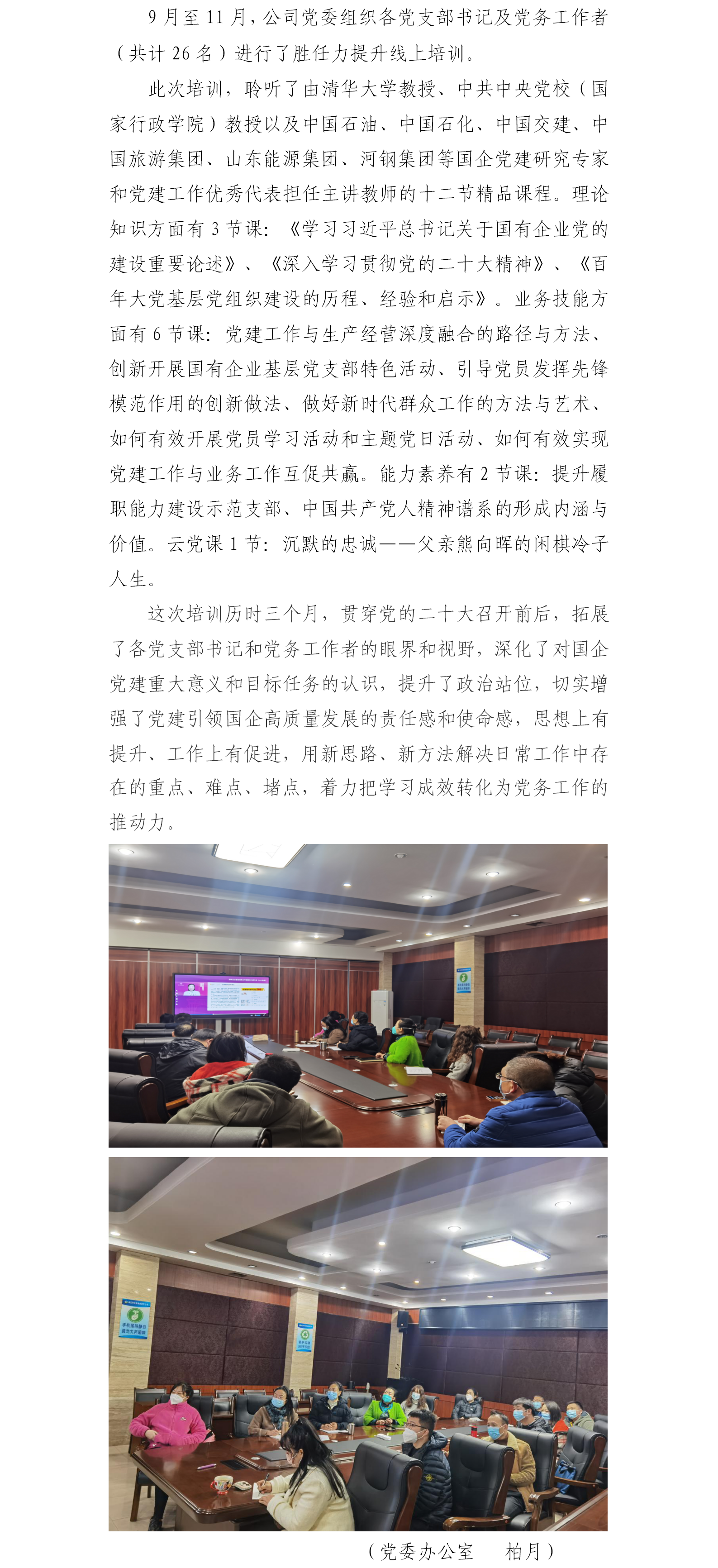公司黨委舉辦黨支部書記(黨務工作者)全覆蓋線上培訓