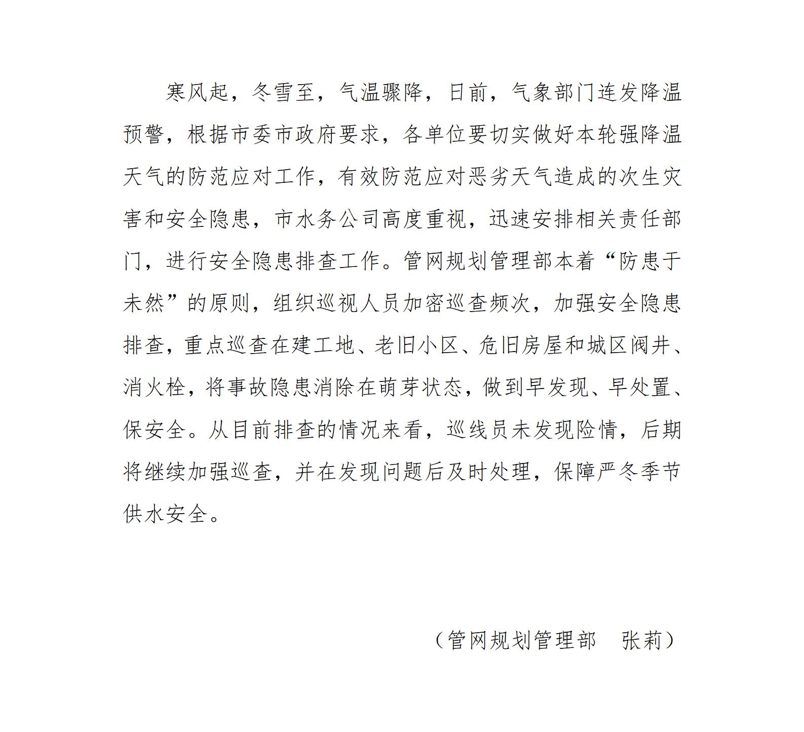 寒潮來臨 保供水安全