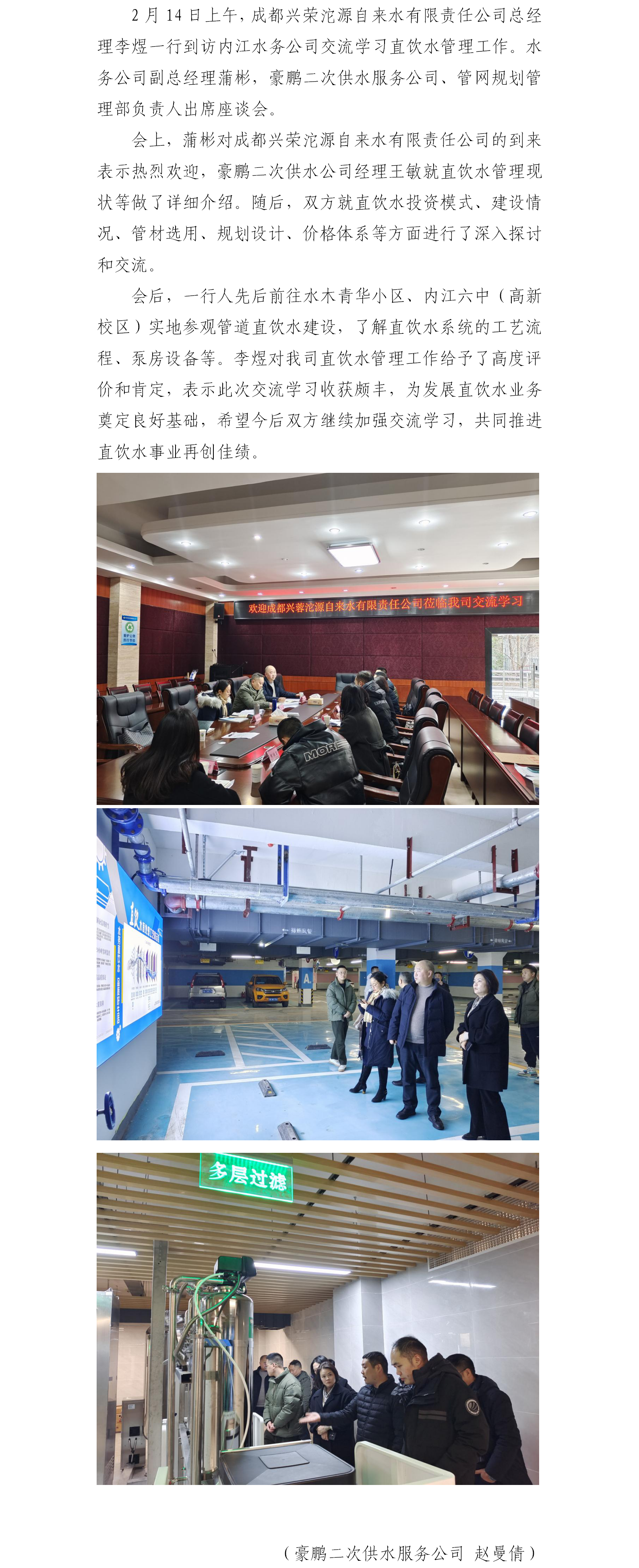 成都興榮沱源自來水有限責任公司到內江水務交流直飲水管理工作