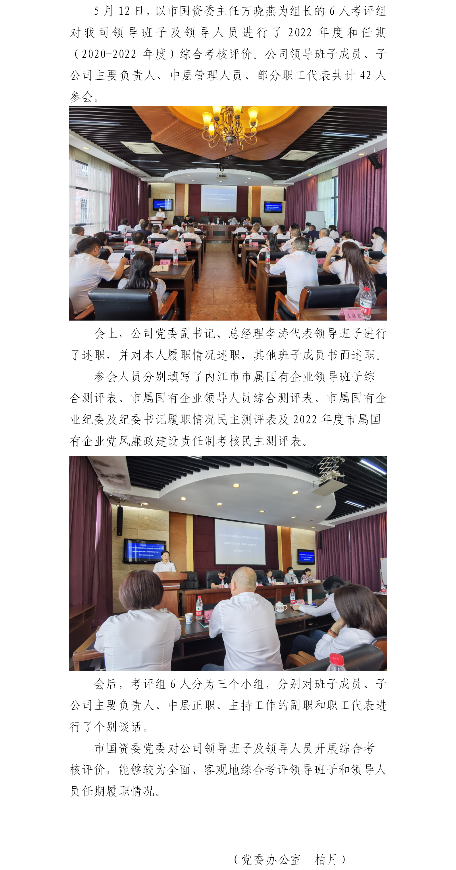市國資委黨委對公司領(lǐng)導班子及領(lǐng)導人員開展2022年度和任期綜合考核評價