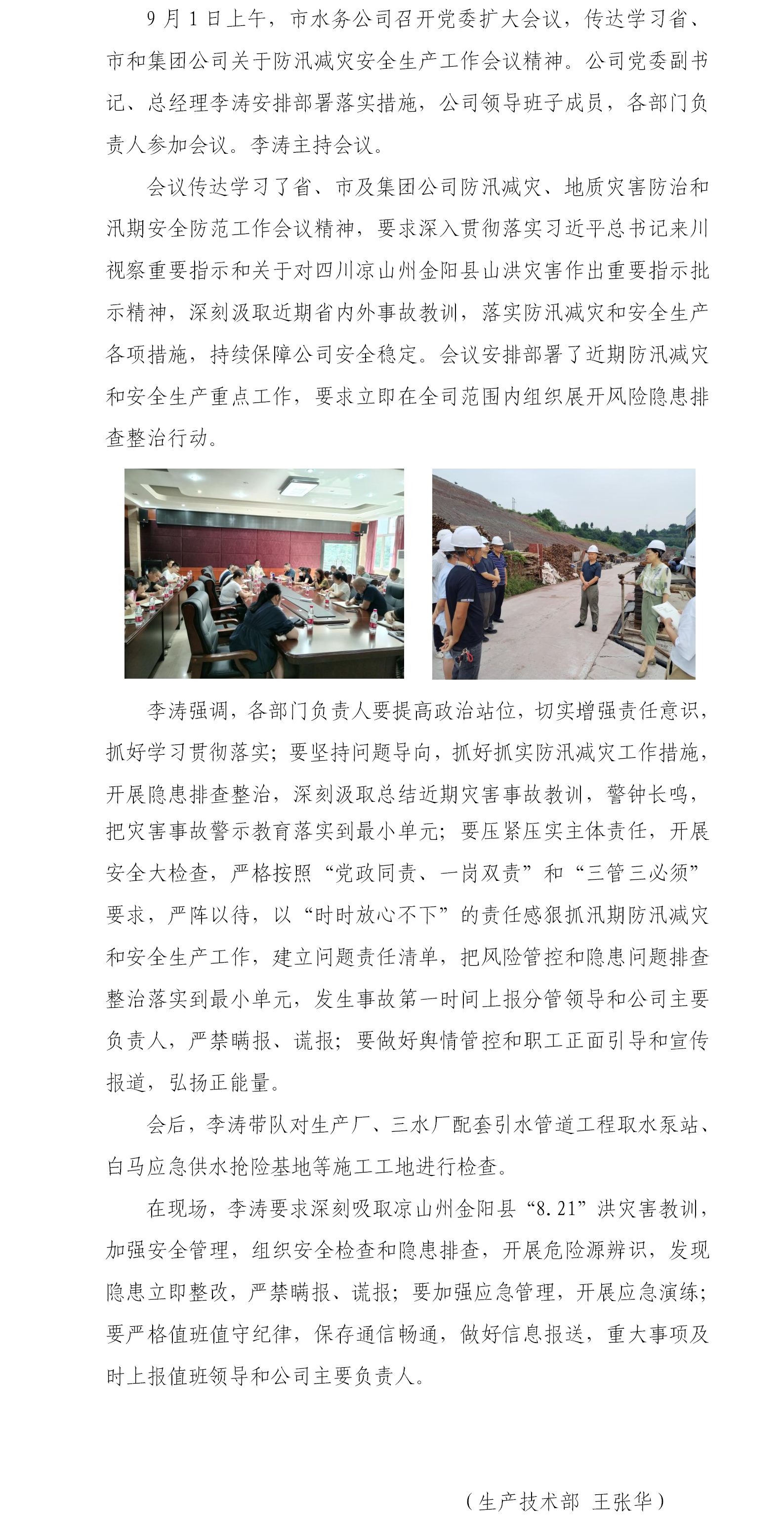 內(nèi)江市水務(wù)有限責(zé)任公司召開(kāi)防汛減災(zāi)安全生產(chǎn)工作專(zhuān)題會(huì)、開(kāi)展安全大檢查