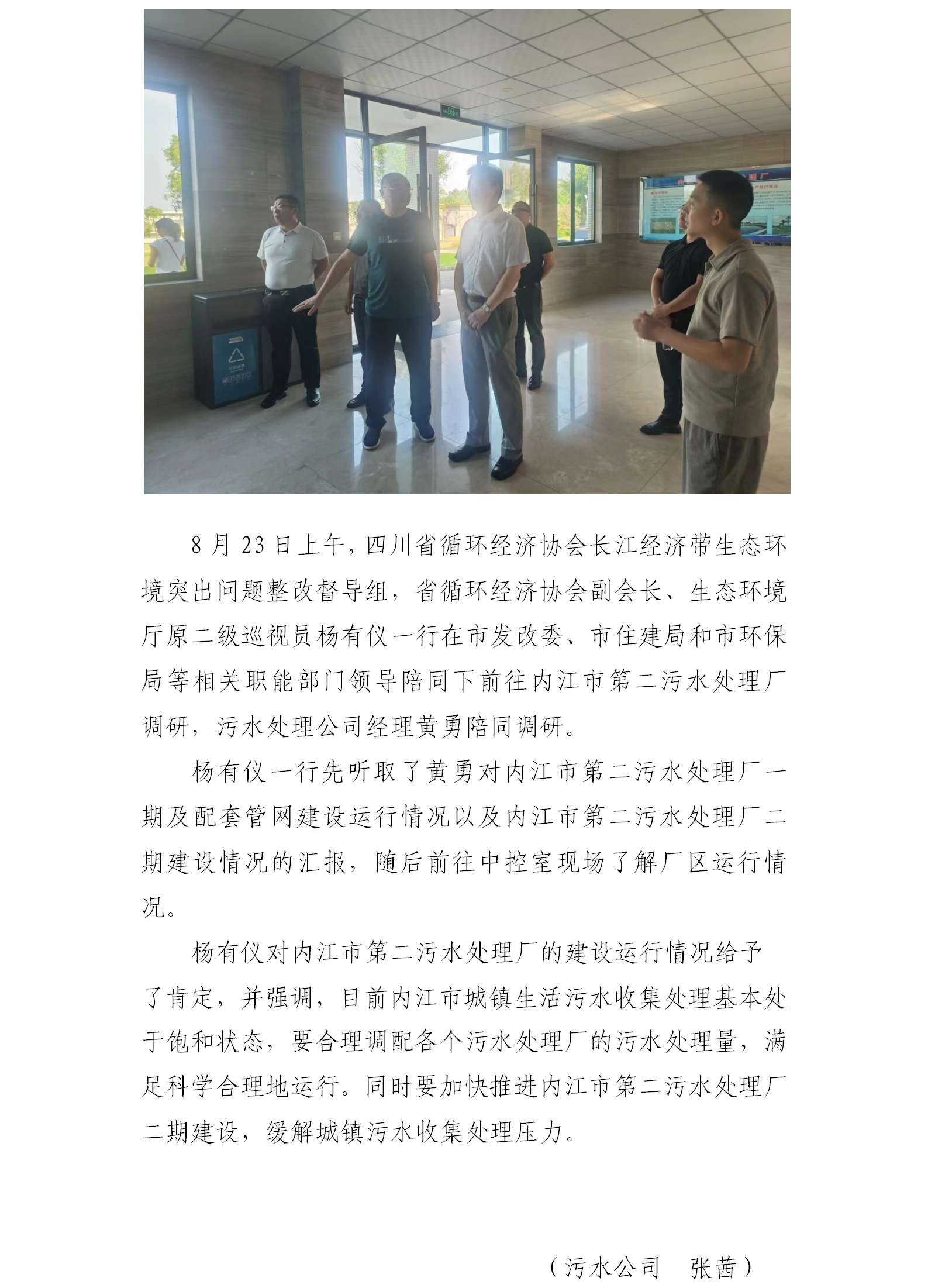 四川省循環經濟協會長江經濟帶生態環境突出問題整改督導組調研內江市第二污水處理廠