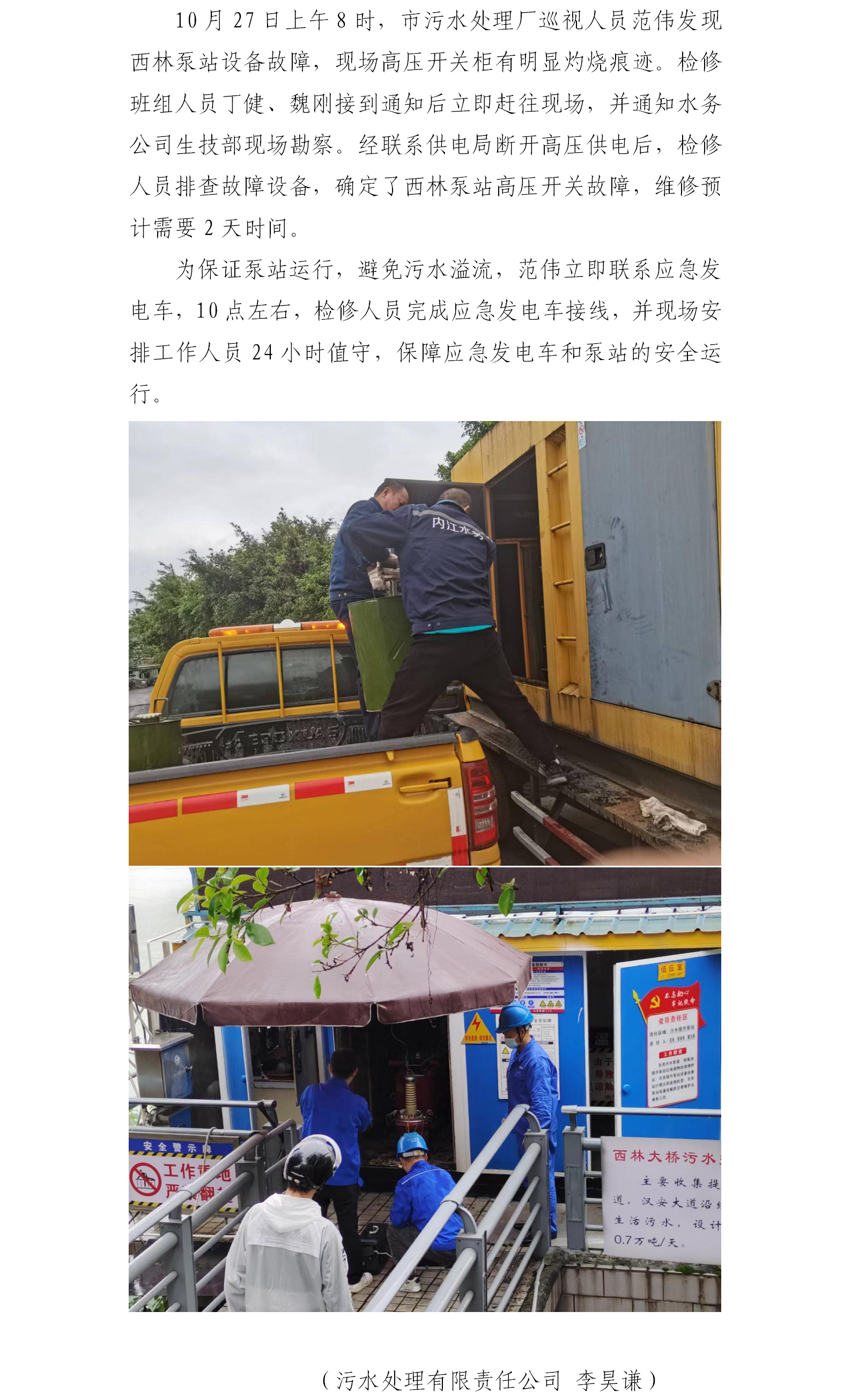 內江市污水處理有限責任公司西林泵站應急搶險處理