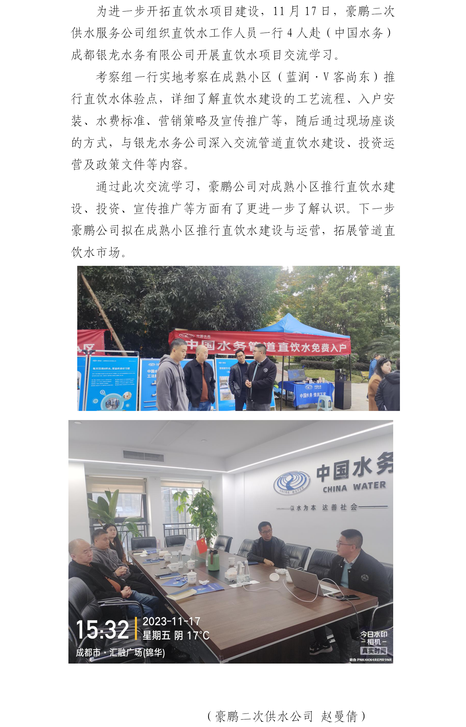 豪鵬公司赴成都考察學習直飲水項目