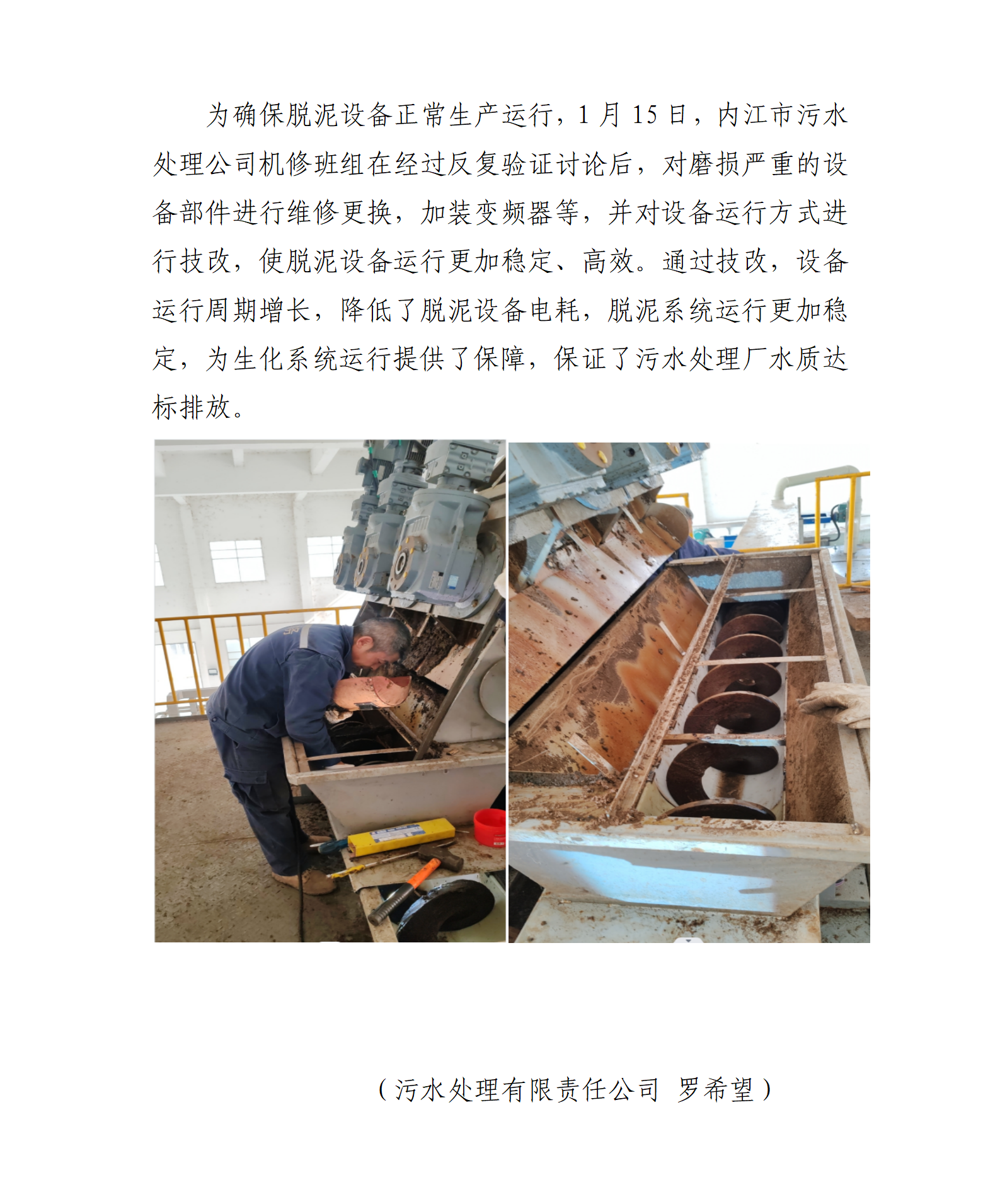 污水處理公司對脫泥設(shè)備進行技改 確保污水達標(biāo)排放