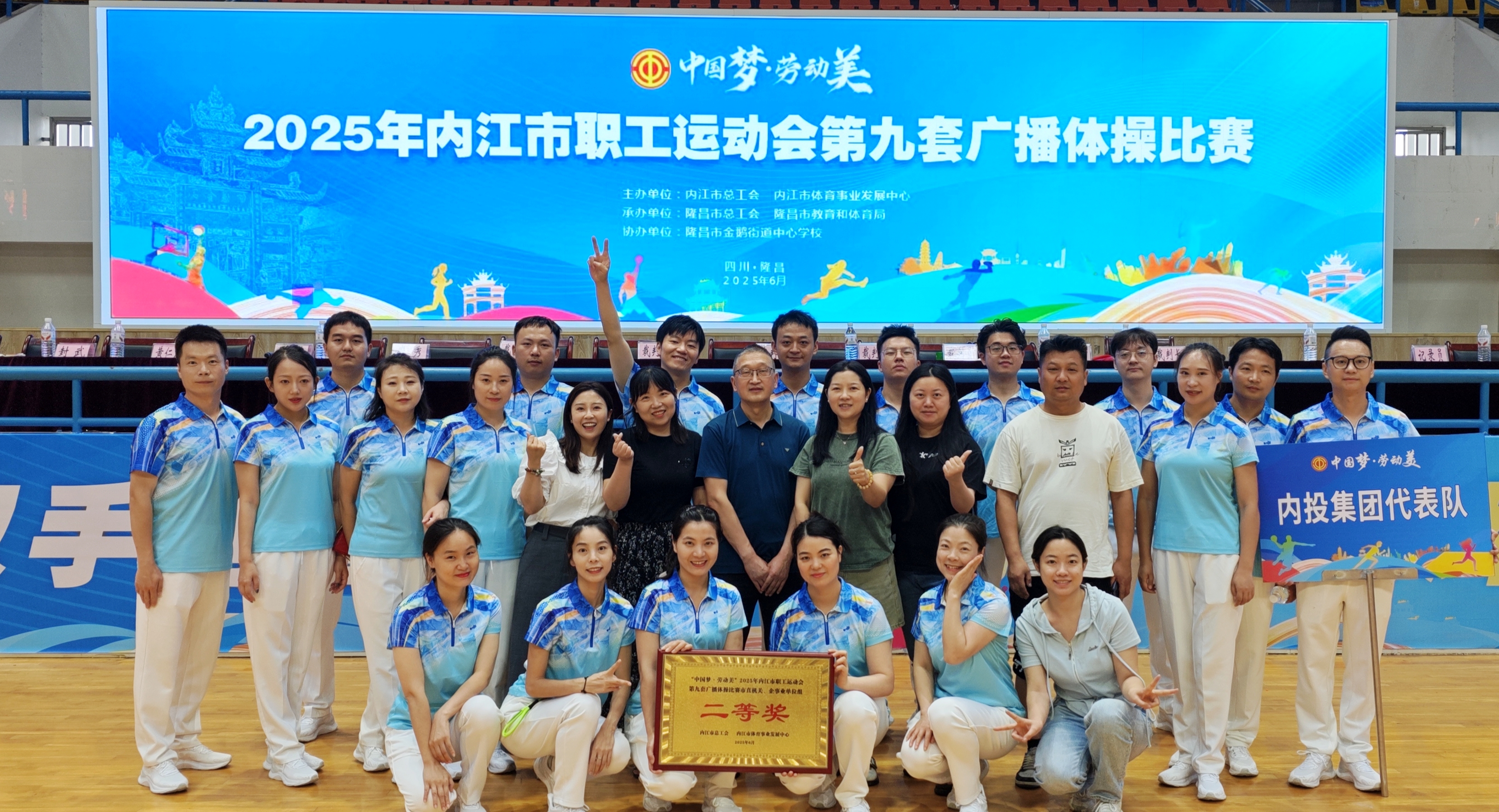 6月21日,2025年內江市職工運動會第九套廣播體操比賽在隆昌市體育中心成功舉辦。由市水務公司和云智科技公司聯合組成的內投集團公司代表隊憑借優異表現,榮獲市直機關、企事業單位組第二名,喜獲二等獎。